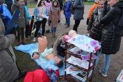 На площадке «Музыка сердца» Петрозаводского базового медицинского колледжа студентки в костюмах сестер-милосердия измеряли всем желающим давление, предлагали минеральную воду из скважин санатория «Марциальные воды».