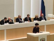 С докладом выступил А.В. Кутепов, председатель Комитета Совета Федерации по регламенту и организации парламентской деятельности по темам “ Общественный контроль на выборах Президента РФ и Итоги Года добровольца (волонтера)». Т.Н. Москалькова, уполномоченный по правам человека в РФ - с докладом, посвященным 70-летию Всеобщей декларации прав человека. М.А. Федотов, председатель Совета при Президенте Российской Федерации по развитию гражданского общества и правам человека выступил по теме «Конституция как программа». Участники заседания активно обсуждали представленные доклады.
