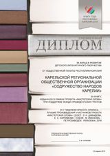23 апреля, в Международный день книги и авторского права, Общественная палата Республики Карелия присоединилась к республиканскому конкурсу «Книга года Республики Карелия». Специальным дипломом от Общественной палаты Республики Карелия награждена КРОО «Содружество народов Карелии» (руководитель - Давыдова Л.Н.), которая совместно с Карельским представительством Союза российских писателей в рамках проекта «Мастерская слова» за счет средств гранта Президента РФ для НКО издала книгу: