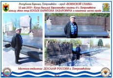 15 мая 2019 года, в рамках празднования 74-ой годовщине победы советского народа над фашизмом, в город «Воинской славы» приехал сын погибшего при защите Петрозаводска в 1941 году отца - Косых Харитона Захаровича.