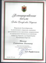 25 декабря 2019 года член Комиссии Общественной Палаты Республики Карелия по делам молодёжи, развитию добровольчества и патриотическому воспитанию Геннадий Мазов был награждён Благодарственным письмом за подписью Главы РК Артура Парфенчикова. В теле письма Геннадию Мазову выражается благодарность за реализацию социально значимых проектов, направленных на пропаганду безопасного поведения детей на дорогах на территории нашей республики.