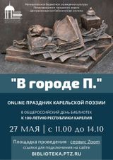 Праздник карельской поэзии «В городе П.» пройдет в онлайн режиме на сервисе Zoom. К мероприятию может подключиться любой желающий по ссылкам: