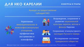 Среди направлений поддержки – развитие межнационального сотрудничества, сохранение самобытности, культуры, языков и традиций народов Карелии; социальная и культурная адаптация и интеграция мигрантов; информационная и методическая поддержка социально ориентированных НКО и другие. Полный список можно найти на сайте Министерства.