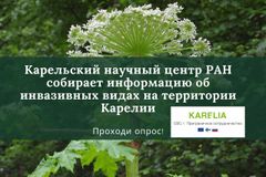 Карельские ученые предлагают жителям республики пройти короткий опрос об инвазивных видах. По времени опрос займет менее 5 минут. Ваши ответы помогут учёным лучше понять, как правильнее работать с населением и рассказывать об инвазивных видах, а также пополнят знания о наличии и распространении инвазивных видов на территории республики. Результаты опроса будут использованы в совместном проекте DIAS Карельского научного центра (КарНЦ РАН), Финского института окружающей среды (SYKE) и Центра природных ресурсов Финляндии (LUKE).