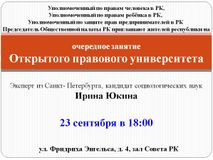 ОП РК информирует: 23 сентября состоится очередное занятие «Открытого правового университета»
