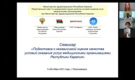 9 сентября 2021 года состоялся онлайн-семинар «Подготовка к независимой оценке качества условий оказания услуг медицинскими организациями Республики Карелия». Организаторами мероприятия выступили Министерство здравоохранения Республики Карелия и Общественный совет при Министерстве здравоохранения Республики Карелия по проведению независимой оценки качества условий оказания услуг медицинскими организациями Республики Карелия.