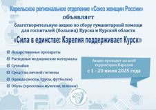 Карельское отделение Союза женщин России проводит благотворительную акцию по сбору гуманитарной помощи для госпиталей (больниц) Курска и Курской области «Сила в единстве: Карелия поддерживает Курск».