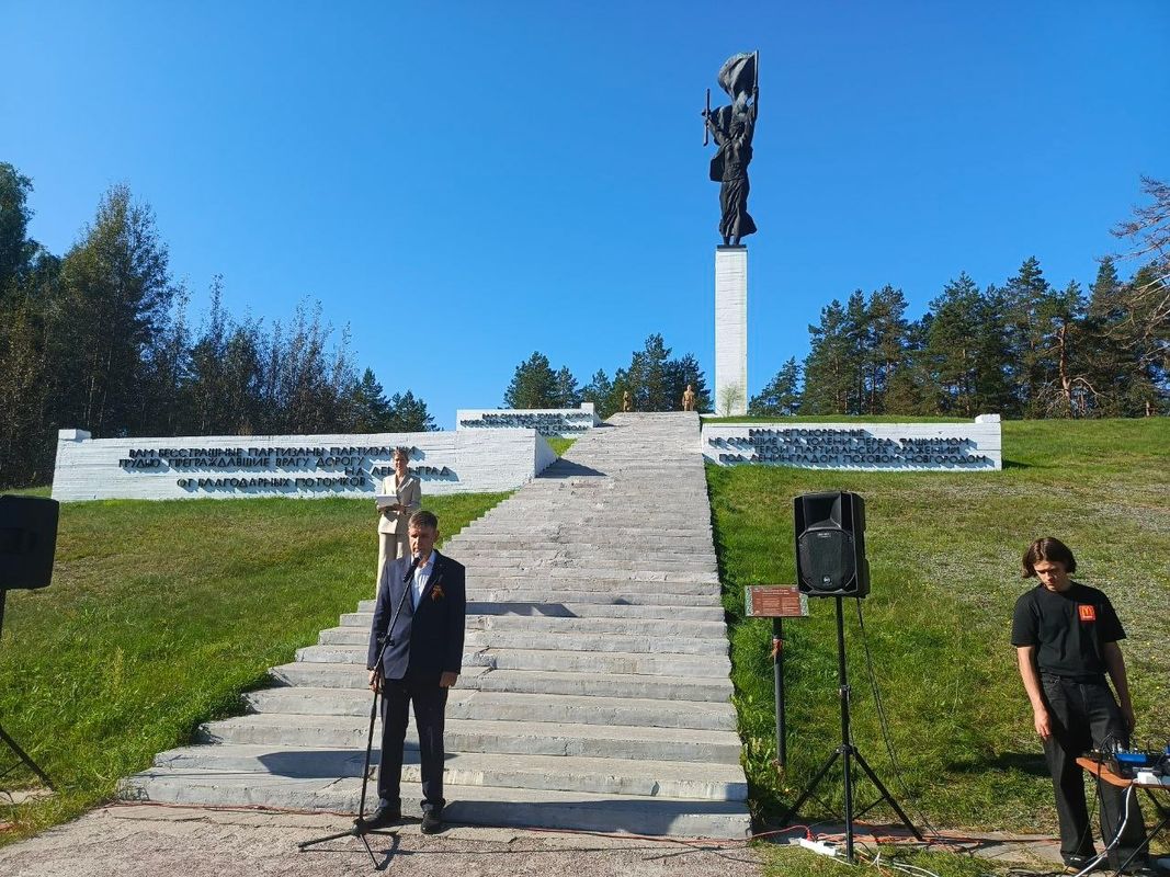 «Делегация Карелии приняла копию знамени Победы на торжественно-траурном митинге, который прошел на территории мемориального комплекса «Партизанская слава». Через 8 дней копию знамени мы передадим в Новгородскую область», — поделился член Общественной палаты РФ от Республики Карелия, руководитель Республиканского центра патриотического воспитания Республики Карелия Илья Герасёв.