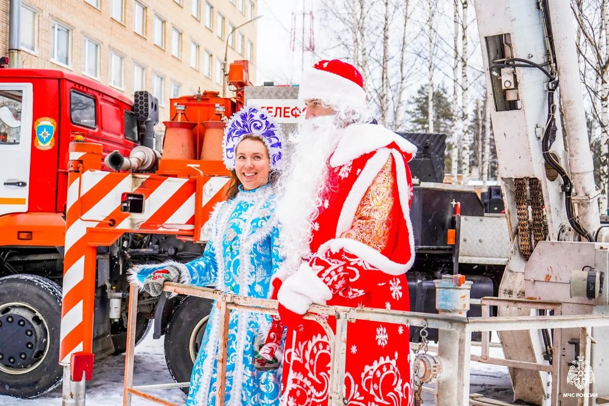 «Новый год — это такой праздник, с которым хочется поделиться с детьми. Когда они видят пожарную машину, их всегда переполняют эмоции. Хочется, чтобы дети были счастливы», — добавил Дед Мороз. Маленькие пациенты наблюдали за представлением из окон больницы, а Дед Мороз и Снегурочка поздравили их с наступающим праздником, забравшись на подъемник пожарной машины.