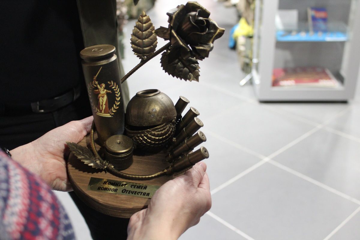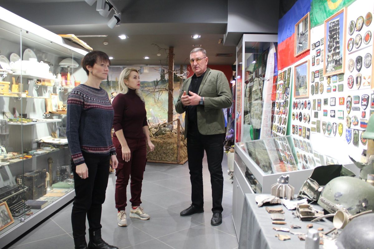 Первым посетителем выставки стала Глава Петрозаводского городского округа Инна Колыхматова. В ходе небольшой экскурсии по музею, которую провел Валерий Лазарев, она передала в дар Центру творческую армейскую композицию от Комитета семей воинов Отечества.