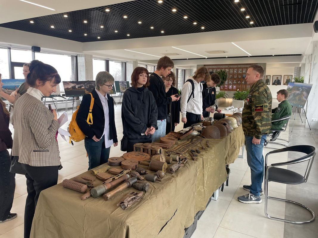 Особую атмосферу встречи создала выставка, развёрнутая в Зимнем саду. Командир поискового отряда «Совесть» Алексей Фирсов представил подлинные артефакты, обнаруженные на рубежах обороны Петрозаводска. Возможность увидеть и прикоснуться к предметам военной поры позволила школьникам буквально ощутить живую связь с историей.