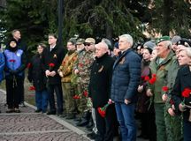 На торжественную церемонию у Мемориального комплекса «Могила Неизвестного солдата с Вечным огнем Славы» в Петрозаводске собрались поисковики, общественники, жители и гости города.