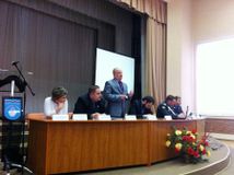 Организаторы общественных слушаний. Александр Топин - член Общественной палаты РК открывает мероприятие.