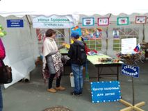 Дети и родители, бабушки и дедушки смогли побывать на «Улице Здоровья», пройти интерактивную игру «Гнездо здоровья», поучаствовать в викторине «Строим город здоровья». Много положительных эмоций у участников этой площадки вызвали скакалки, обручи, велотренажеры, тренажеры-степперы. Специалисты разработали и предложили увлекательную программу для детей: вместе с психологом и педагогом воспитателем больницы они собирали «Пазл здоровья», раскрашивая и собирая в одно целое кусочки пазла. Все дети стремились и были рады получить на память небольшие призы за участие в викторинах и конкурсах на «Улице Здоровья». Также на площадке работали волонтеры – учащиеся МОУ СОШ № 46.